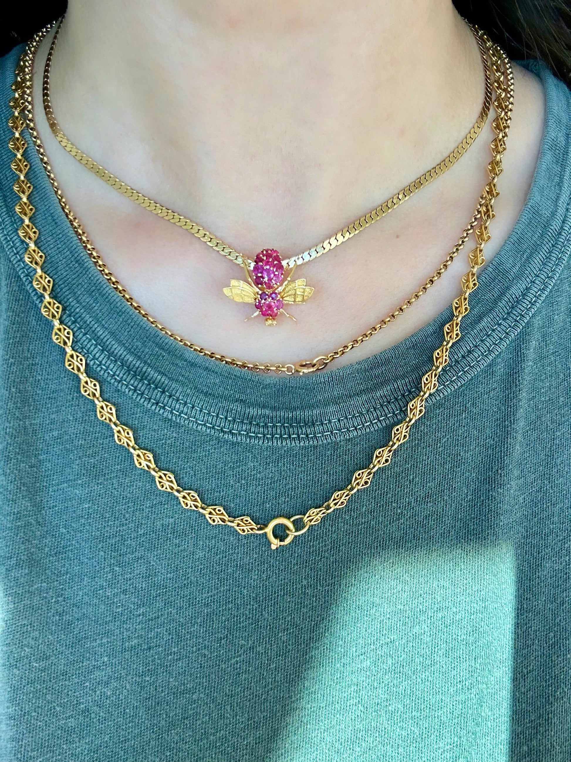 One of my favorite types of vintage chains from the '70s is a tight curb. when done right (such as this beauty), they look and feel like liquid gold on your neck. I love this length so it just curves right with your collar bones.